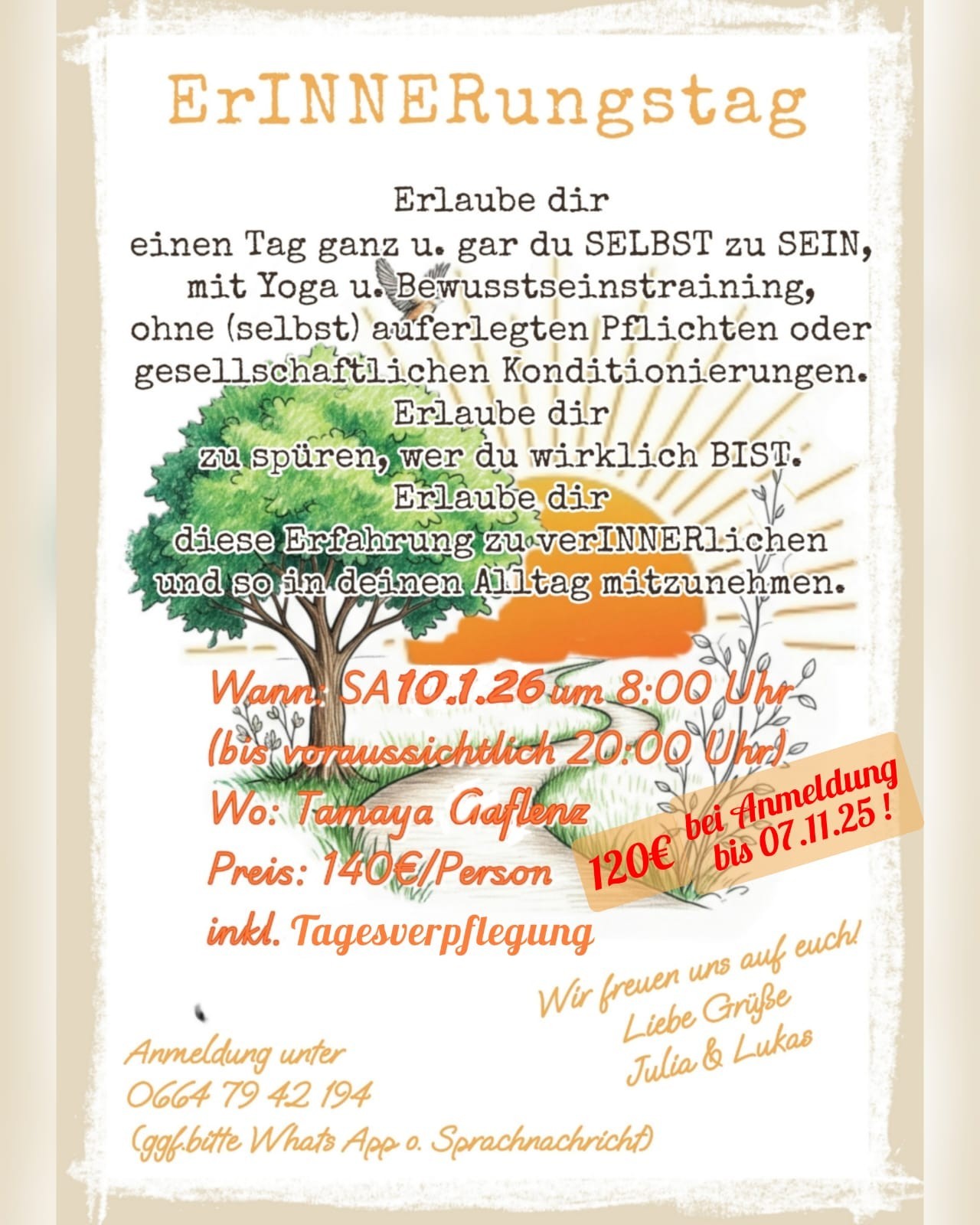 Achtung !!! € 120,-- bei Anmeldung bis 07.11.2025!!!