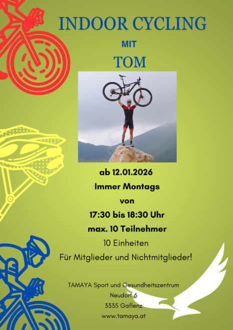 ab Montag 12.01.2026 ist es wieder soweit, Indoor Cycling mit Tom startet wieder zur gewohnten Zeit!