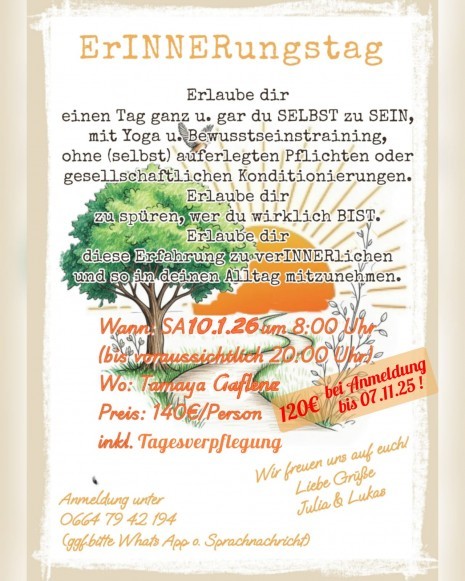Anmeldung unter: 0664 79 42 19 (ggf bitte Whats App oder Sprachnachricht)